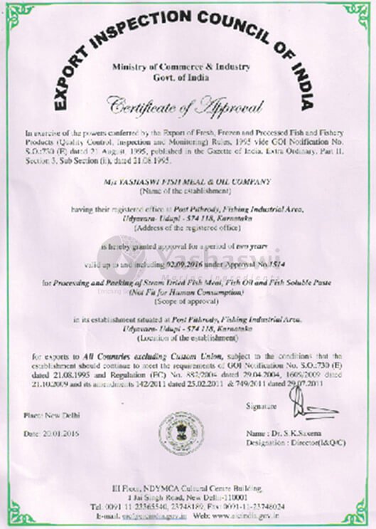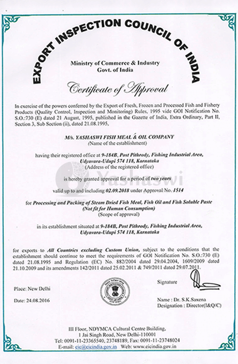 Located in Mangalore Special Economic Zone, Mangalore, a coastal town of Karnataka, Yashaswi Fishmeal and Oil Company Branch- 2 has been involved in bringing out the treasures of the Arabian Sea to the masses. Yashaswi is known for its devotion to values and customer-focused business practices. The company has put in place robust process mechanism, modern technology, stringent quality measures and trained manpower to ensure their customers get highest quality products consistently. Through its uncompromising quality and wide range of products, Yashaswi continues to remain ‘top-of-the-mind’ choice for its customers across the world.